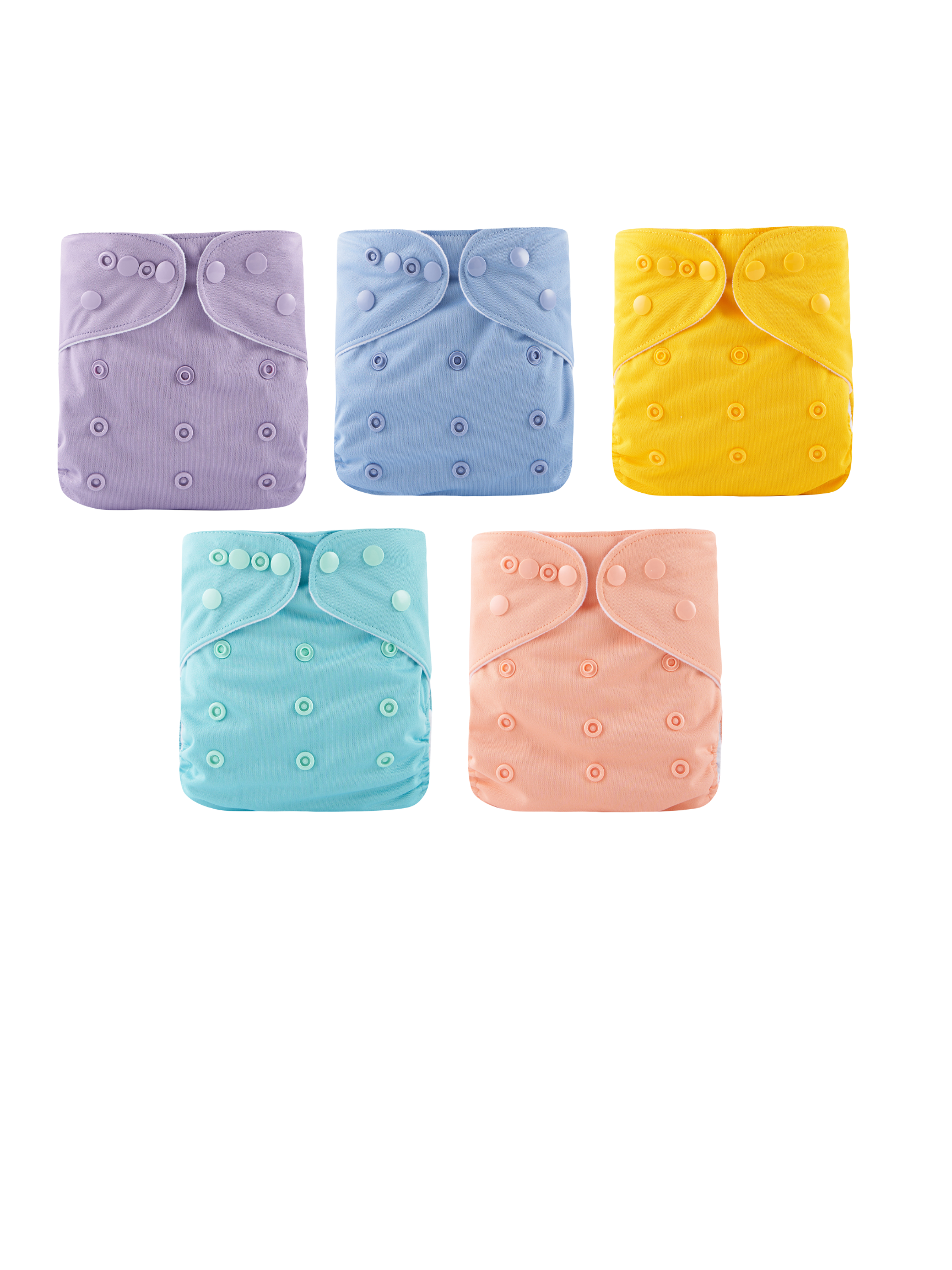 2 inserts of bamboo cotton + 3 inserts leg gusset made with Bamboo coton and microfiber + 5 cloth diapers