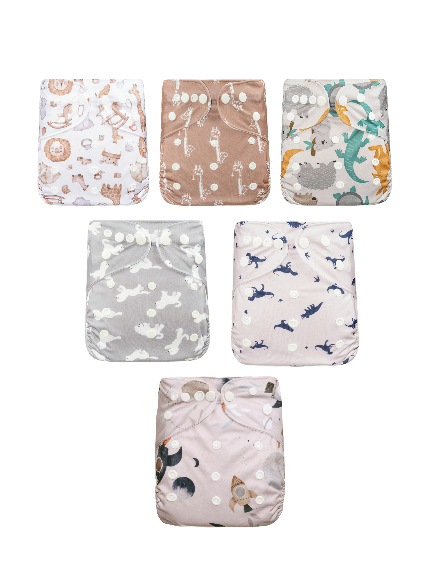 3 inserts of bamboo cotton + 3 inserts leg gusset made with Bamboo coton and microfiber + 6 cloth diapers
