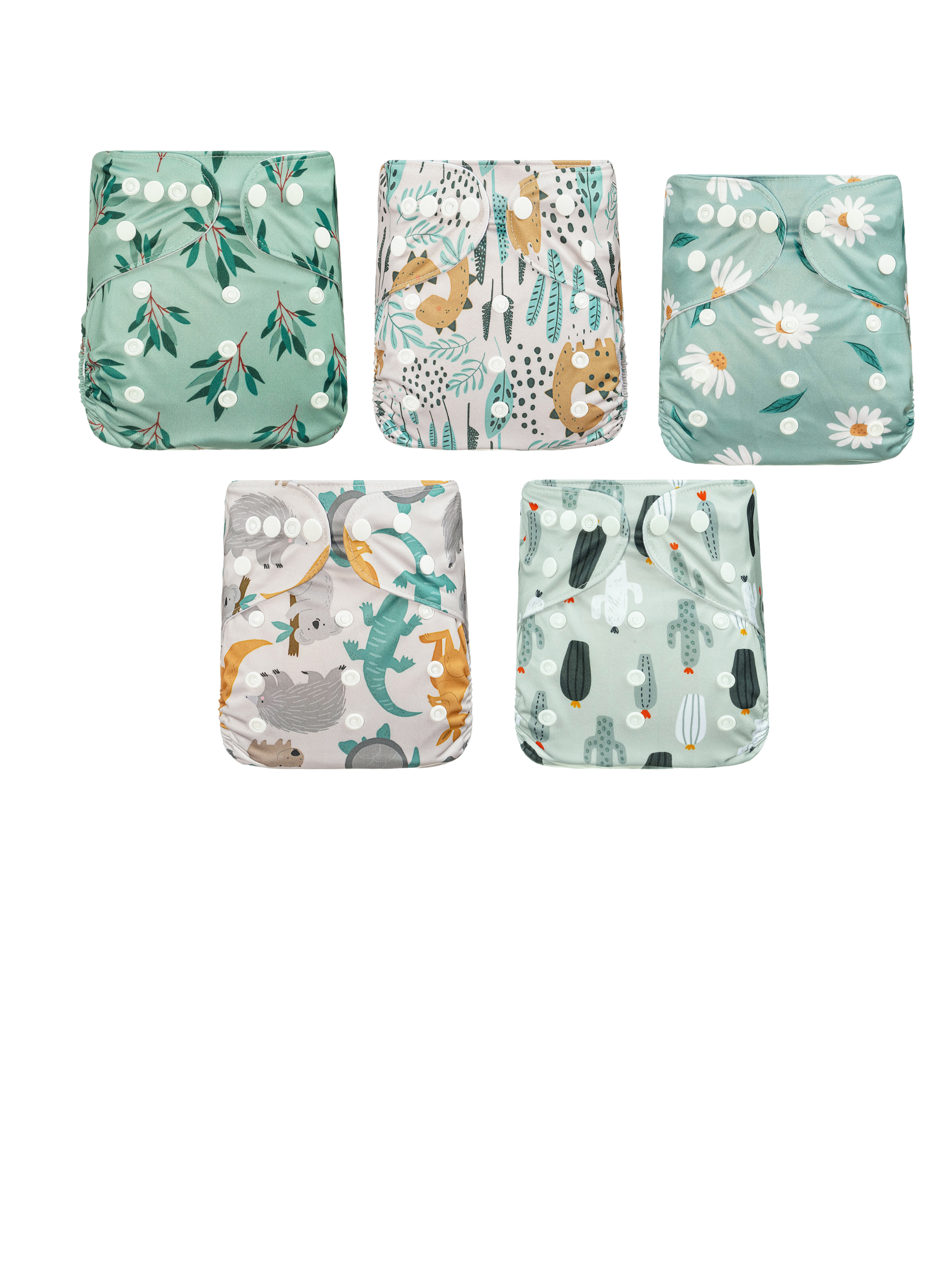 2 inserts of bamboo cotton + 3 inserts leg gusset made with Bamboo coton and microfiber + 5 cloth diapers