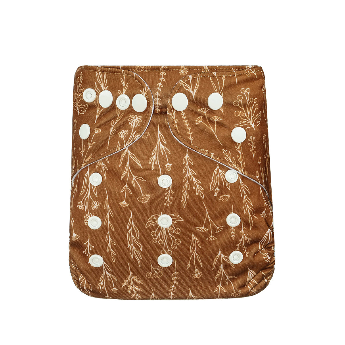 This reusable cloth diaper features adjustable snap closures for a customizable, secure fit as your baby grows.